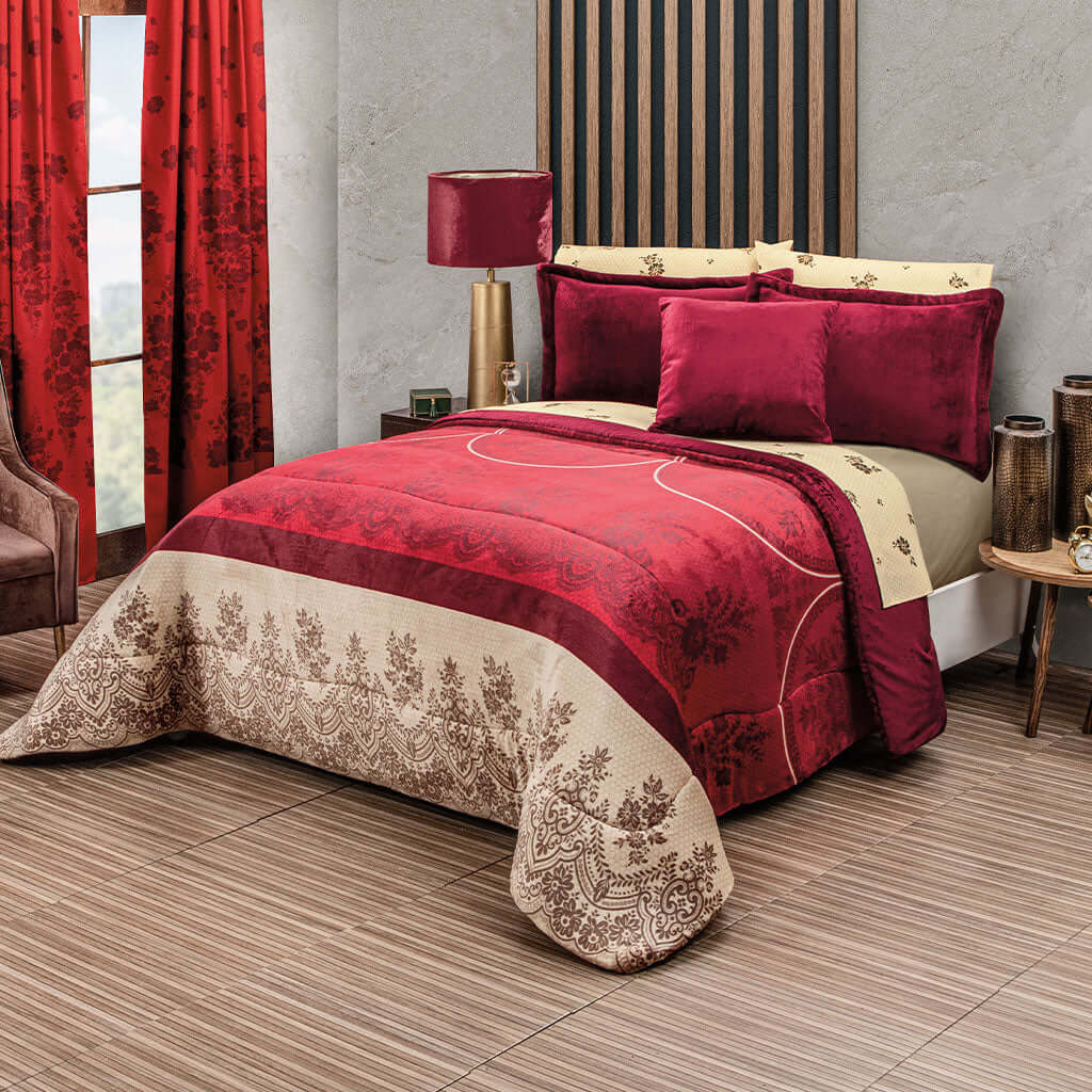 • Full Jumbo : • 1 Cobertor (2,05 m x 2,20 m / 81" x 87") | • 2 Fundas Decorativas | • 1 cojin | • 1 Juego de sabanas |